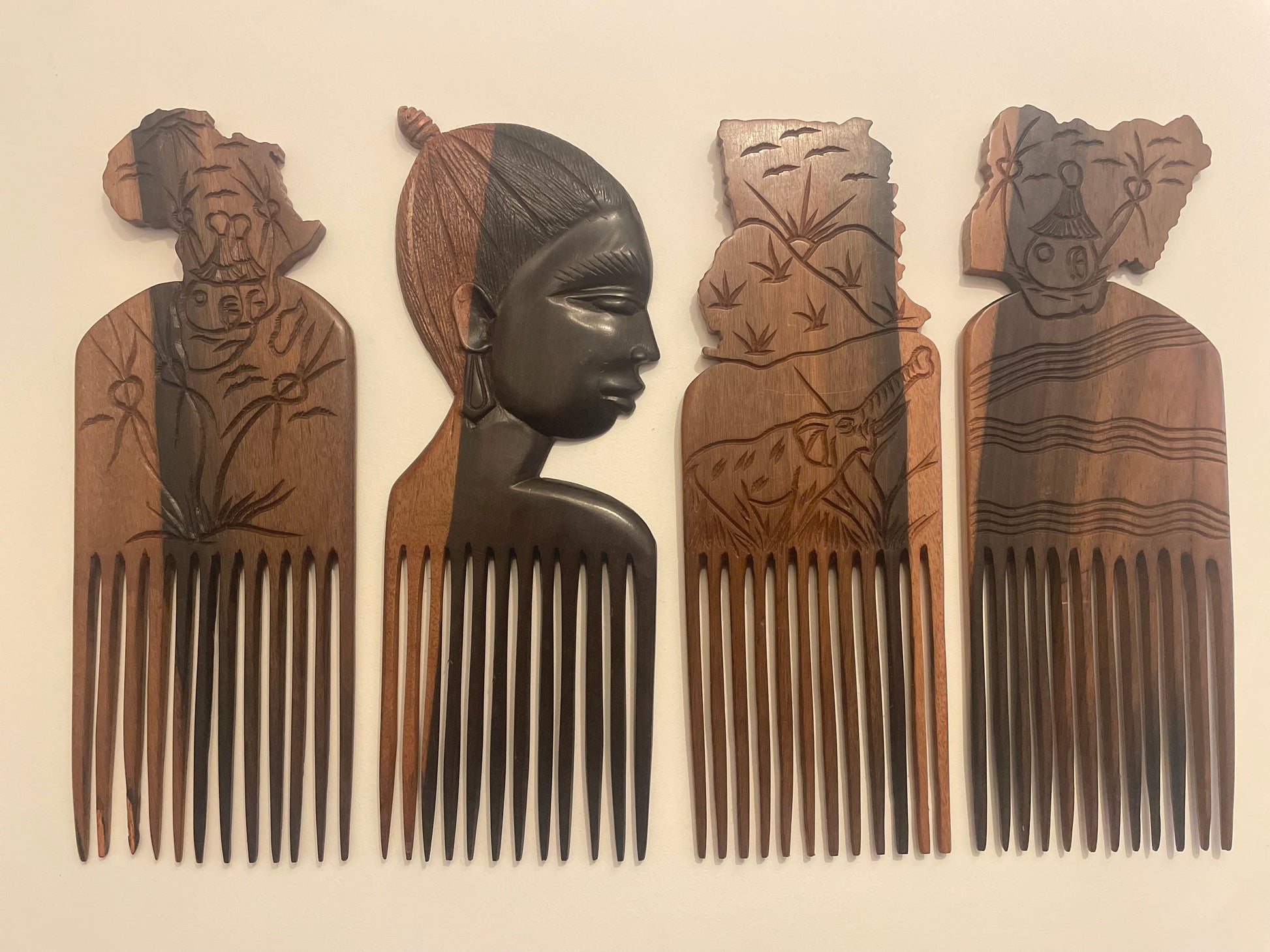 Elevate your home decor with the Ancient Blends Large Ebony Afro Hair Comb. This hand-carved wooden comb is not only functional but also a beautiful piece of hanging decor. Recommended placements: